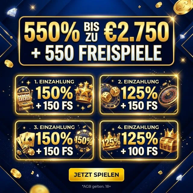 550% Willkommensbonus auf 4 Einzahlungen + 550 Freispiele — alle Bedingungen transparent erklärt